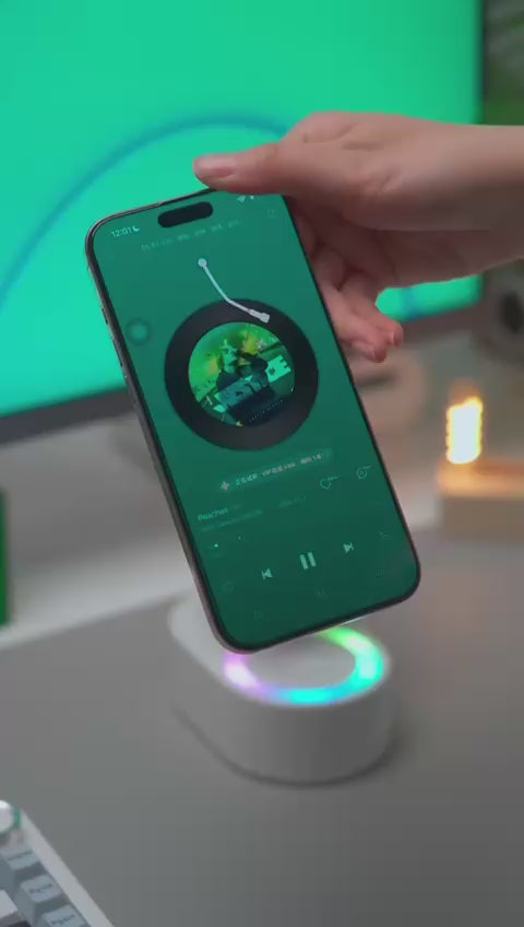 📱 The base design of the mobile power bank can charge your phone anytime, anywhere, so you say goodbye to power anxiety!🔋Not only that, its colorful atmosphere lighting can enhance the ambiance of any space!🌈✨